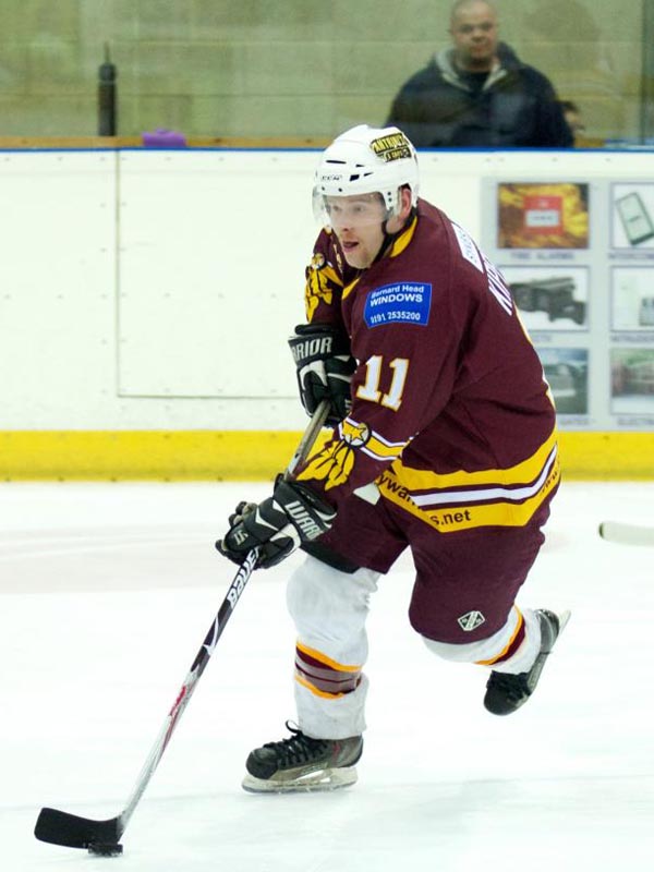 Billingham Stars have extended their lead at the top of ENL1 North. Goals from Alex Lawson and James Udell helped them to a 2-1 win at Trafford Metros and they followed up with a 4-1 home success over Coventry Blaze. Reigning champions Whitley Warriors are now second. Following a 4-1 loss at Blackburn they recovered to defeat the Hawks 4-2 on home ice – Shaun Kippin (left) scored twice. Former Newcastle Vipers netminder Richie Lawson made his debut as Warriors travelled to face Nottingham Lions and helped them to a 4-3 win.